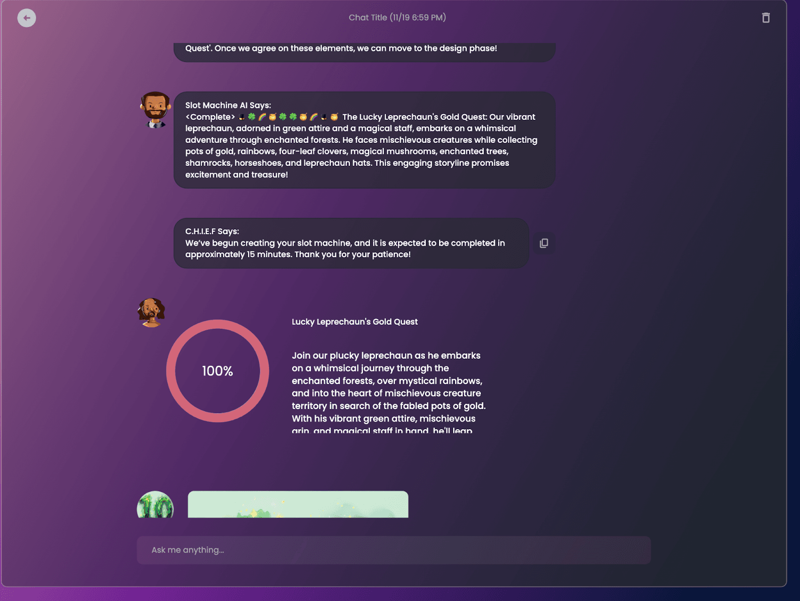 “You type in the type of mechanics that you're looking for in mathematics, the [return to player], the volatility you want, and it'll output that engine for you,” Chief Revenue Officer Adam Davis explained. “You can go back and refine it. And in terms of like comparisons to the more traditional process, if you're going to go to a game studio to produce this game for you, where you can lay out use case to give them some kind of description and concepts, they're going to take a minimum months to come to finalize the product for you.”