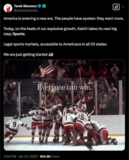 Tarek Mansour advertising sports betting for the entire U.S. market. Source: X.com