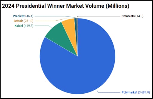 2024 trading volumes on the U.S. election market, by platform. Source: X.com