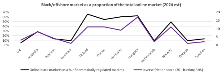 The harder it is to access regulated betting, the more players turn offshore. A warning for Japan. Source: Regulus Partners