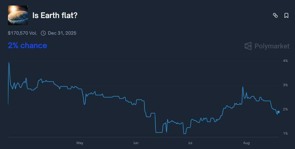 One of many examples of a market you would not find anywhere else. This is an appealing factor for prediction markets. Source: Polymarket