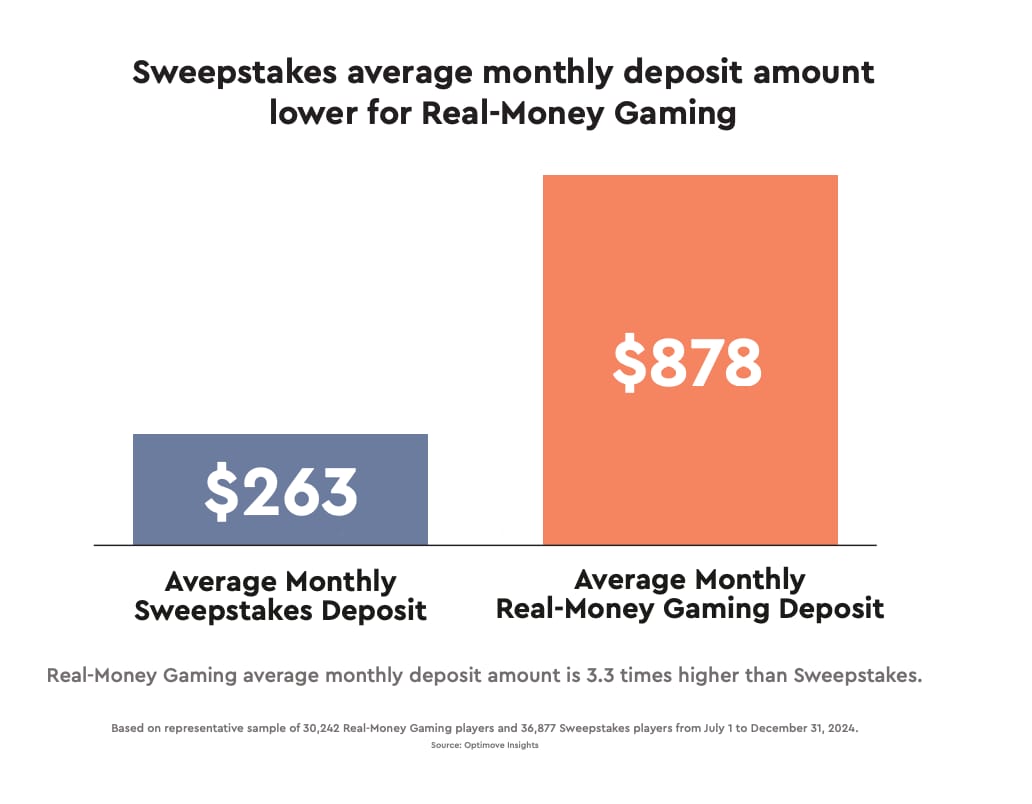 Average monthly deposit comparison between Sweepstakes and Real-Money Gaming. Source: Optimove