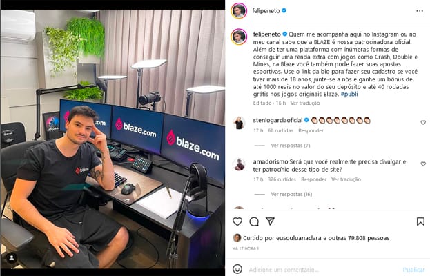 One of Felipe Neto’s Instagram posts promoting Blaze. Source: Instagram