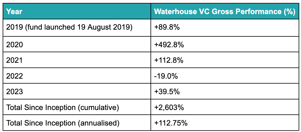 Waterhouse VC’s gross performance, as of 31 December 2023