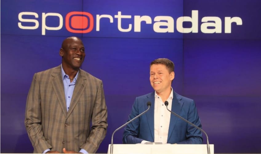 Michael Jordan, a large shareholder of Sportradar with CEO Carsten Koerl: Source: GlobeNewswire.